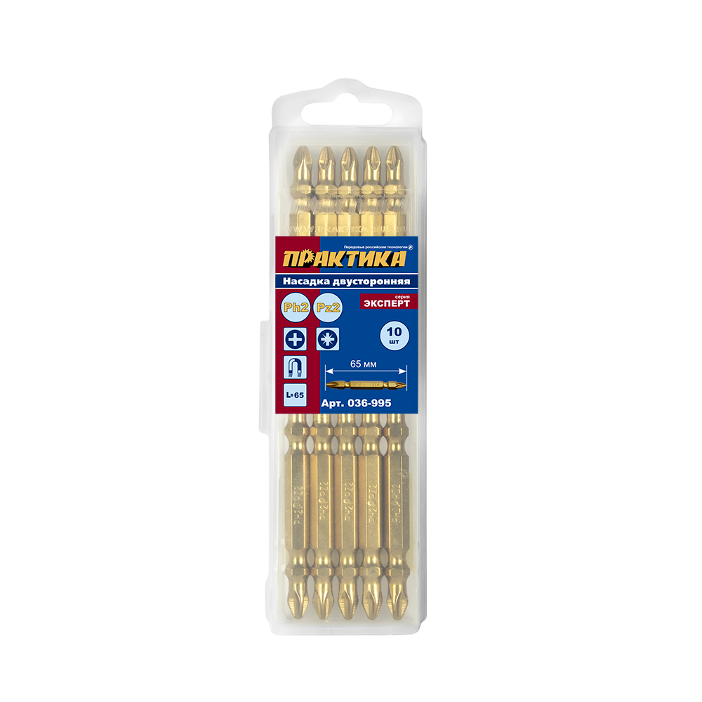 Бита отверточная ПРАКТИКА "Эксперт" двусторонняя PH-2/PZ-2 х 65мм Tin (10шт (036-995)