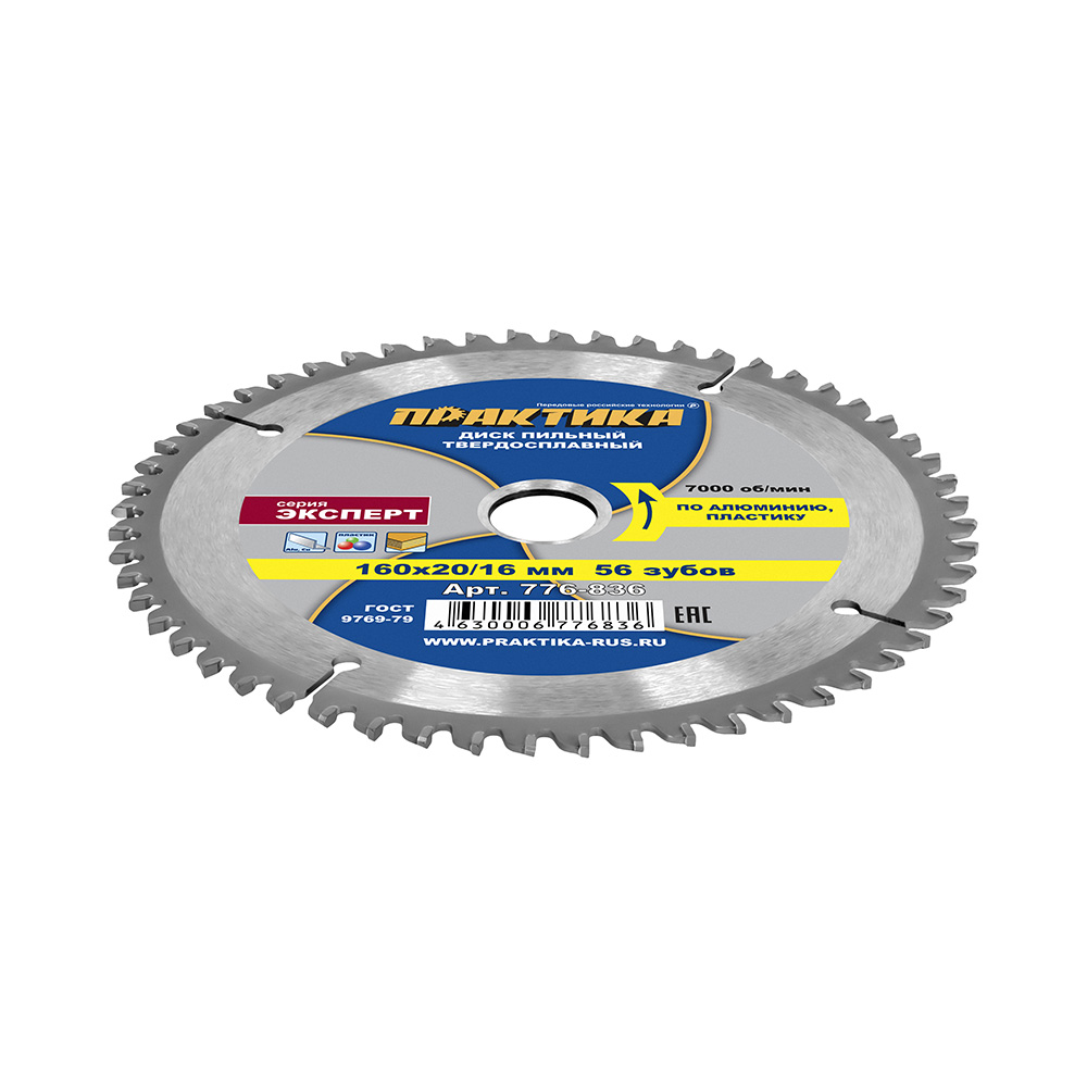 Диск пильный твердосплавный по алюминию ПРАКТИКА 160 х 20\16 мм, 56 зубьев (776-836)