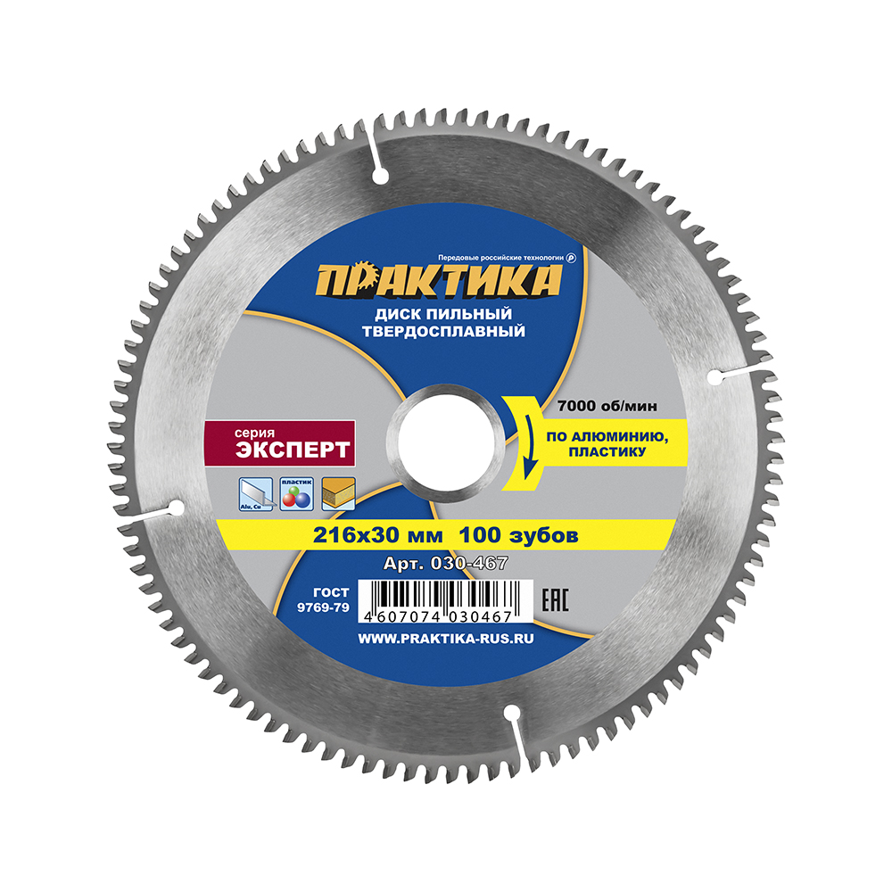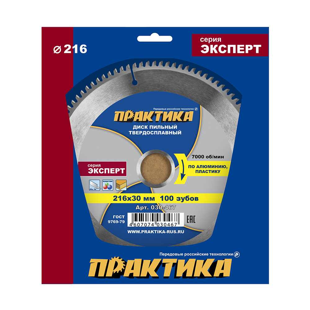 Диск пильный твердосплавный по алюминию ПРАКТИКА 216 х 30 мм, 100 зубьев (030-467)