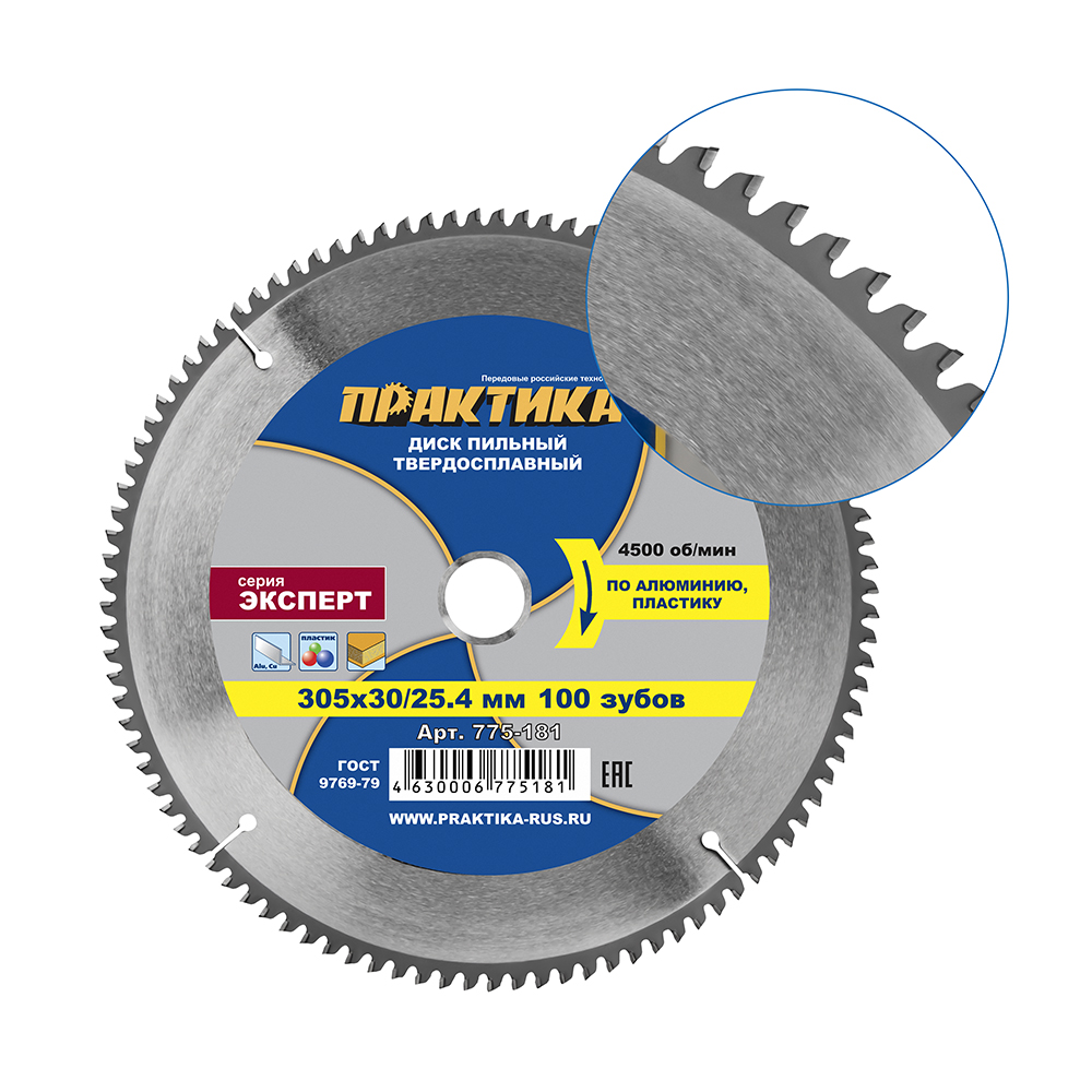 Диск пильный твердосплавный по алюминию ПРАКТИКА 305 х 30\25,4 мм, 100 зубьев (775-181)