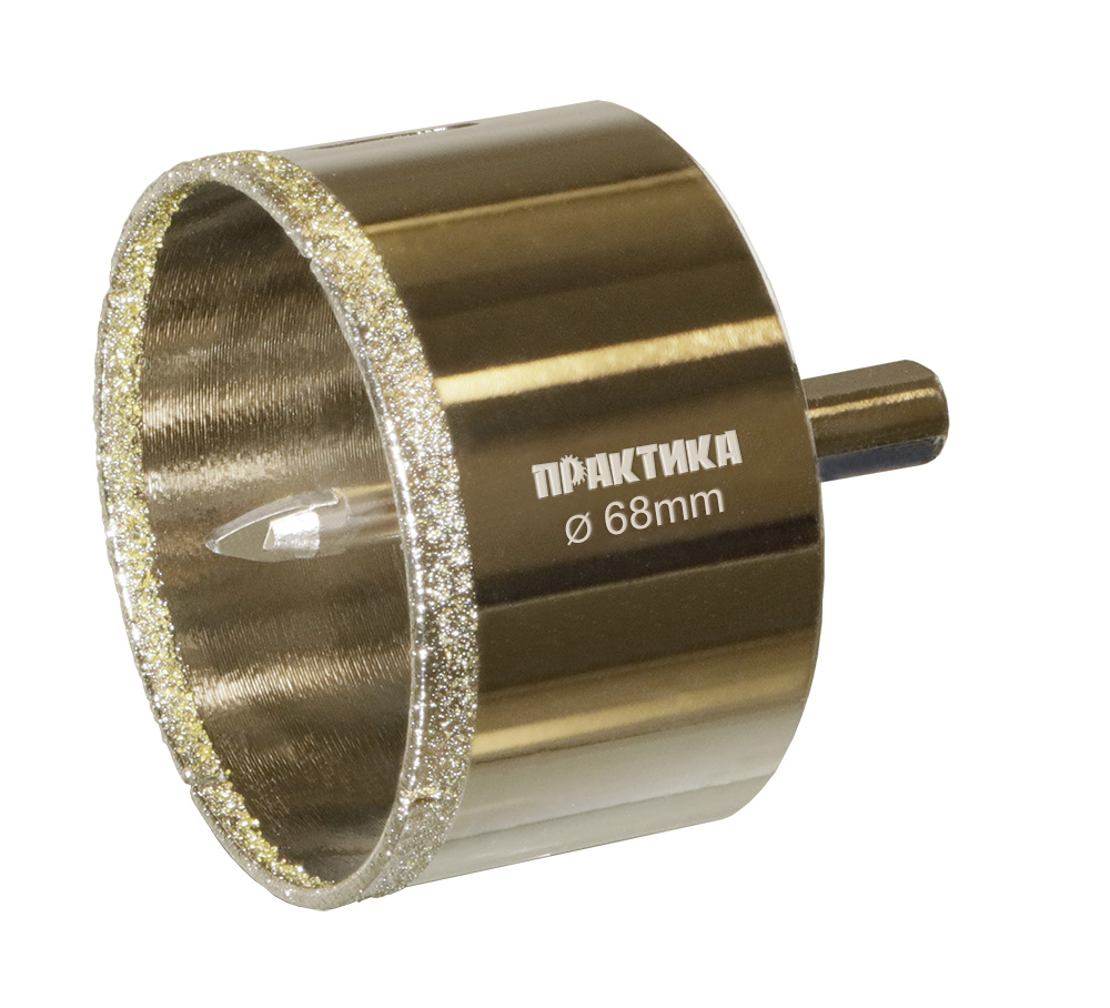 • Коронка алмазная ПРАКТИКА "Профи" по керамограниту/керамике  68х70мм, пилотное сверло (1шт) блистер (917-712)