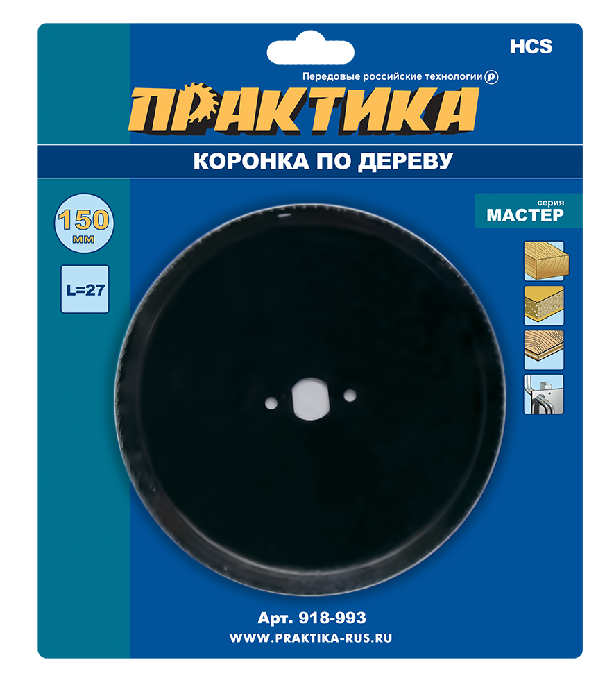 Коронка HCS по дереву/гипсокартону ПРАКТИКА "Мастер" 150 мм, L-27мм, без адаптера (1 шт), блистер
