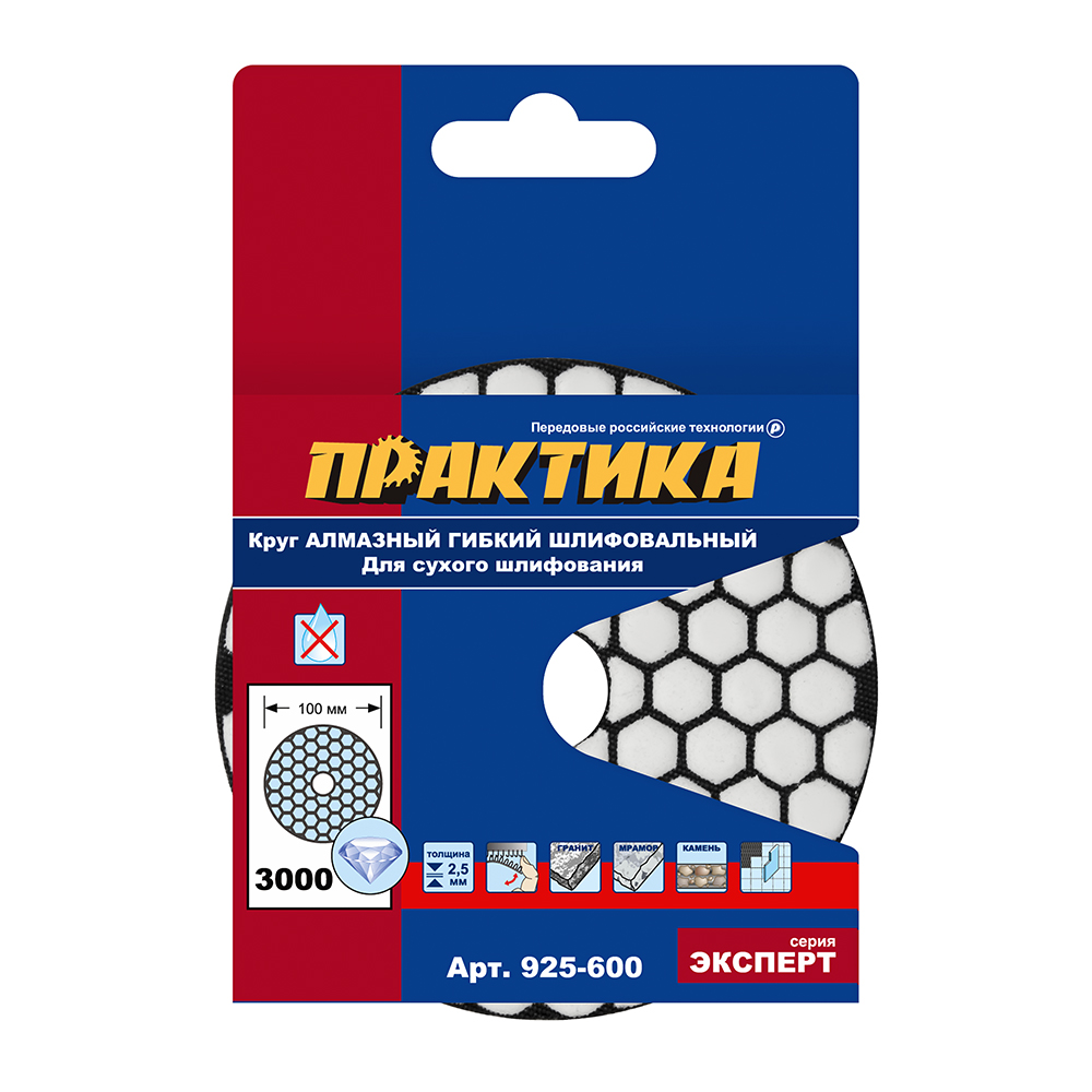 Круг алмазный гибкий шлифовальный ПРАКТИКА 100 мм  для сухого шлифования,  P3000
