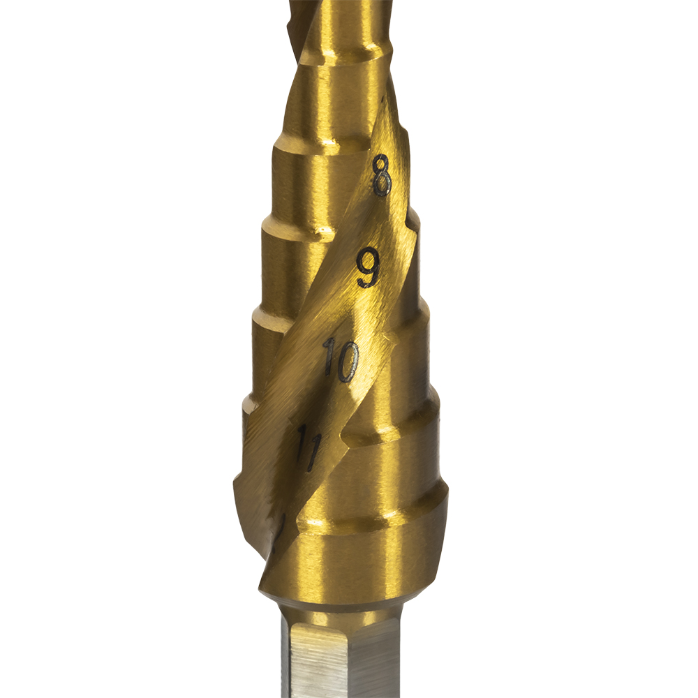 • Сверло по металлу ступенчатое спиральное ПРАКТИКА 4-12мм, шаг 1мм, хвост.1/4", ЭКСПЕРТ